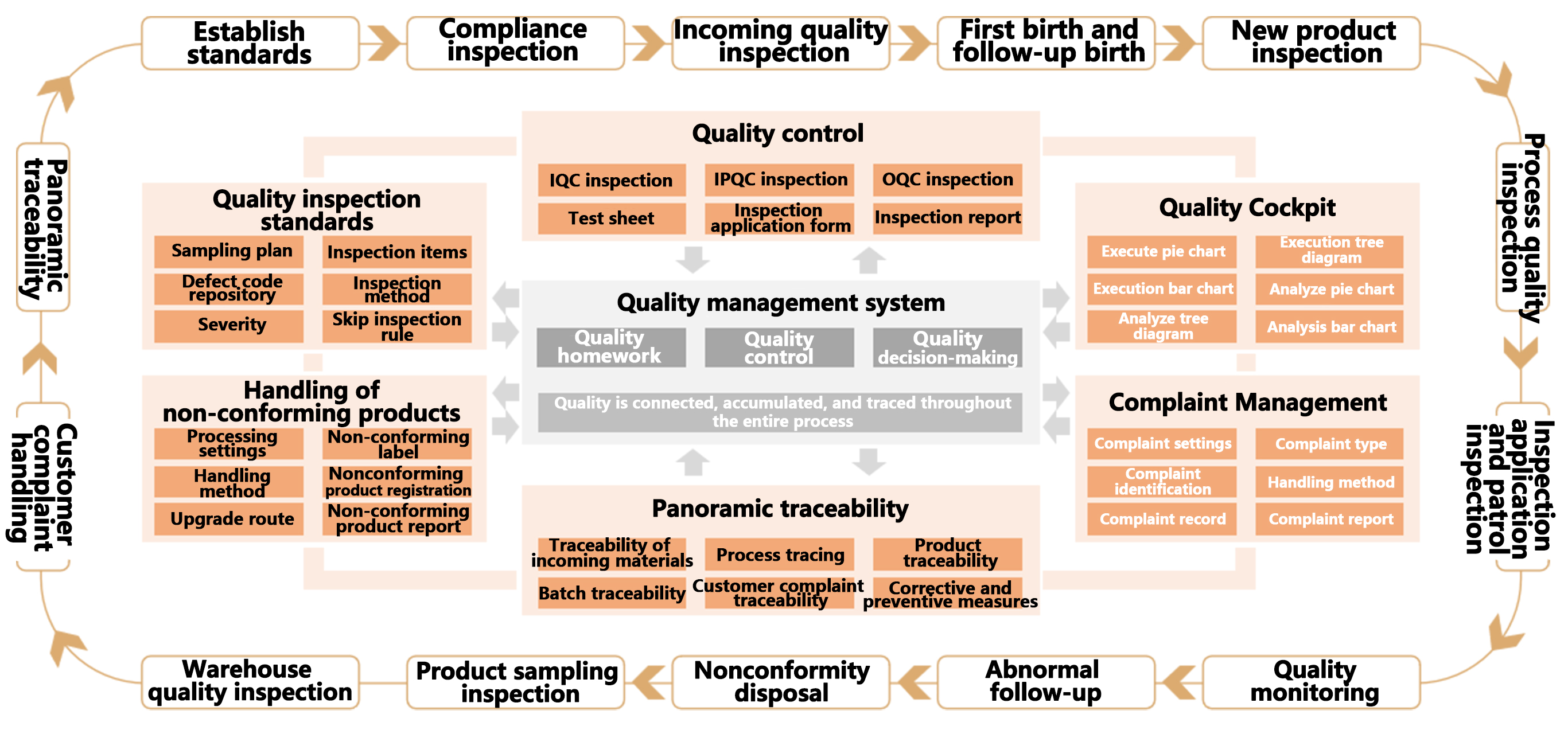 runs through the whole process of enterprise quality business, covering quality standard formulation, process monitoring, inspection and analysis and problem tracing, realizing controllable and traceable quality throughout the product life cycle. Help enterprises to improve the efficiency of quality control, reduce the risk of defects, optimize production consistency, and promote the upgrading of quality management to intelligent and lean.