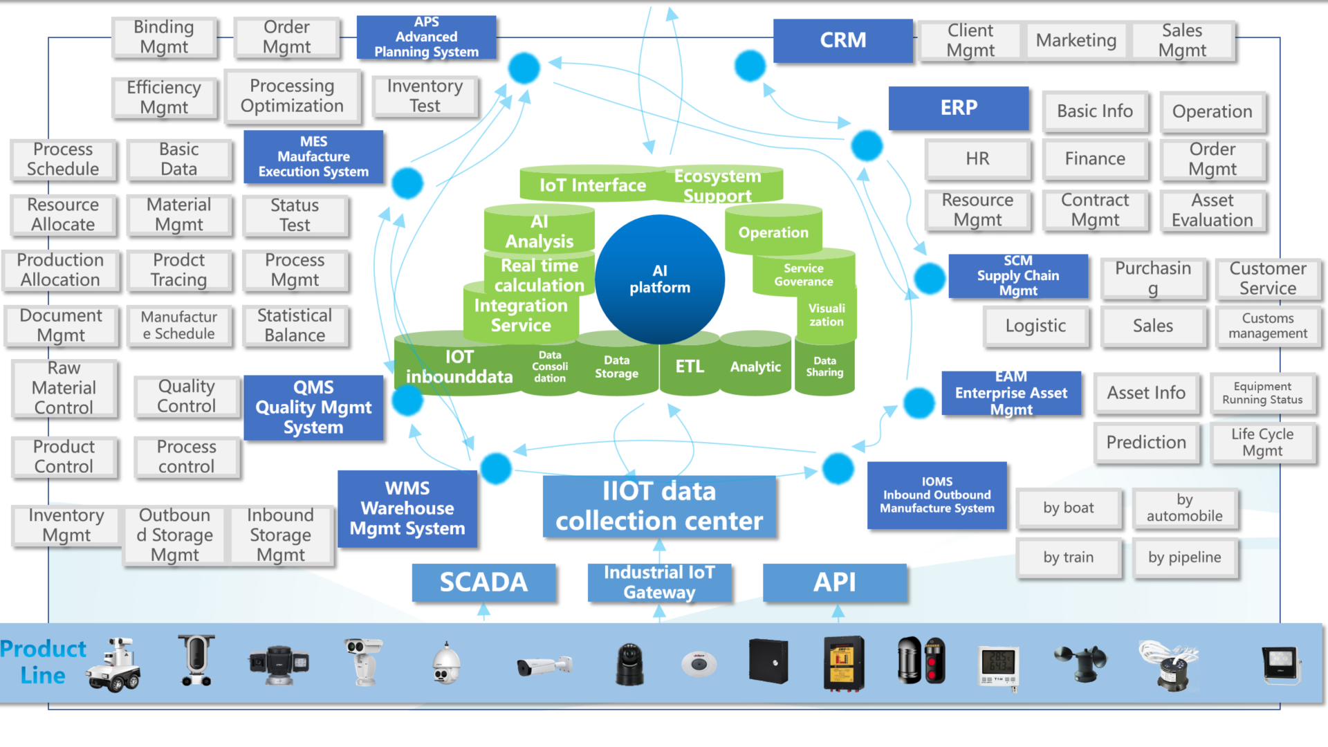 Through years of technology accumulation and joint efforts with our IoT and manufacturing partners, we released the Hank Era Smart Manufacturing Solution. It provides manufacturing enterprises with a full set of solutions for production management, operation management, real-time IoT product information collection, data analysis, quality management, manufacturing planning, raw material management, warehouse management, inventory management, etc. Hank Times smart manufacturing solutions also have interfaces with your ERP, CRM, SCM, and EAM (Enterprise Asset Management) systems.