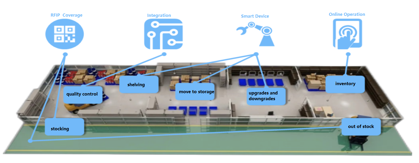 in the material in and out of the warehouse operation, based on material identification, RFID, wireless transmission technology, the introduction of Internet of things equipment, mobile terminals, the whole process of warehouse management digital and labeling transformation, to achieve people, things, space digital and visualization, warehouse business operations. And through the integration of shared services to achieve event-driven warehouse management, process standardization, to help enterprises achieve "consistent accounts", improve operational efficiency, optimize inventory management.